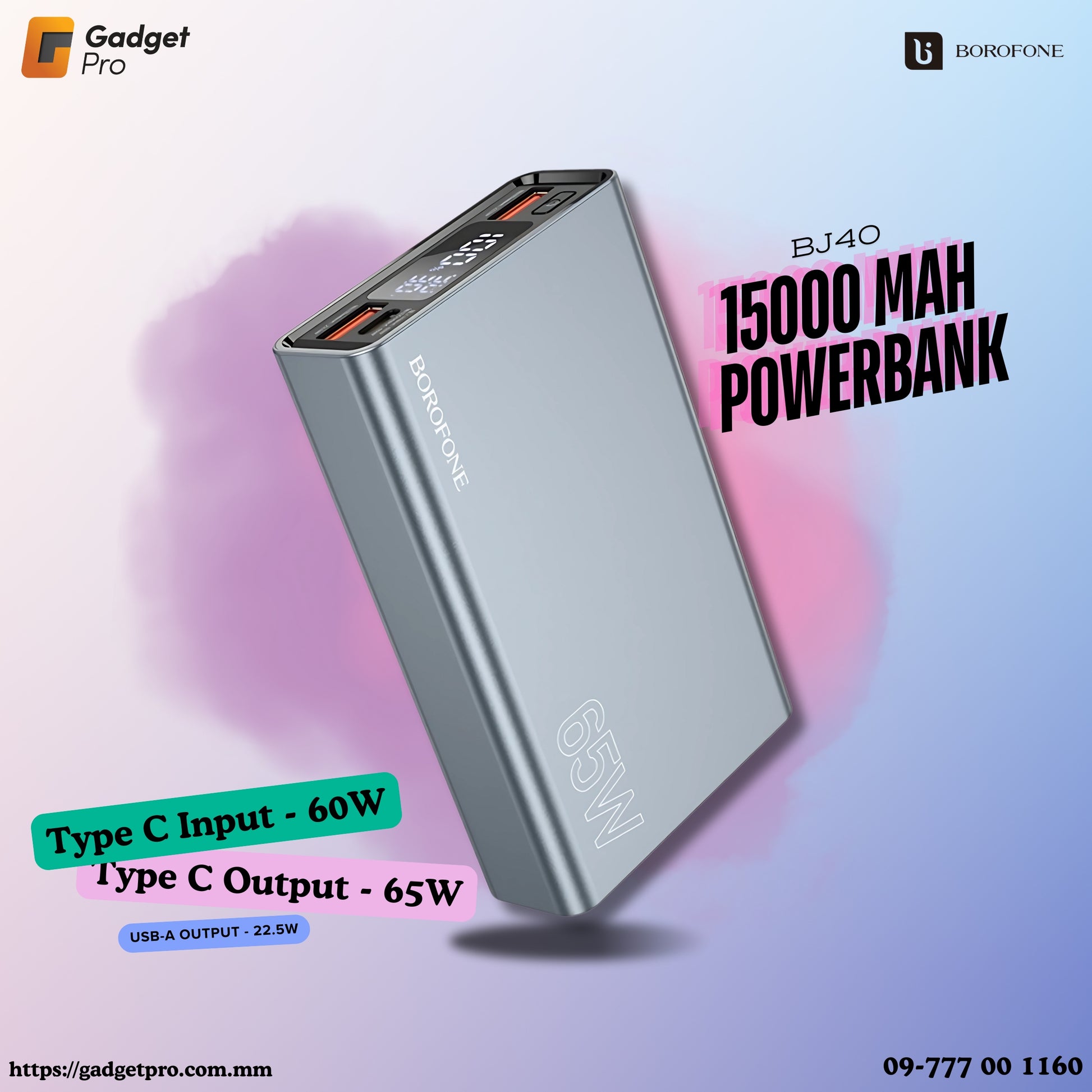 ပေါ့ပါးကျစ်လစ်ပြီး အလျှင်မြန်ဆုံး အားထွက်နှုန်းနဲ့ Power Bank တစ်လုံးကို ရှာဖွေနေတယ်ဆိုရင်တော့ BOROFONE ရဲ့ BJ40 15000mAh Power Bank လေးကို မေ့ထားလို့ မရဘူးနော်...။